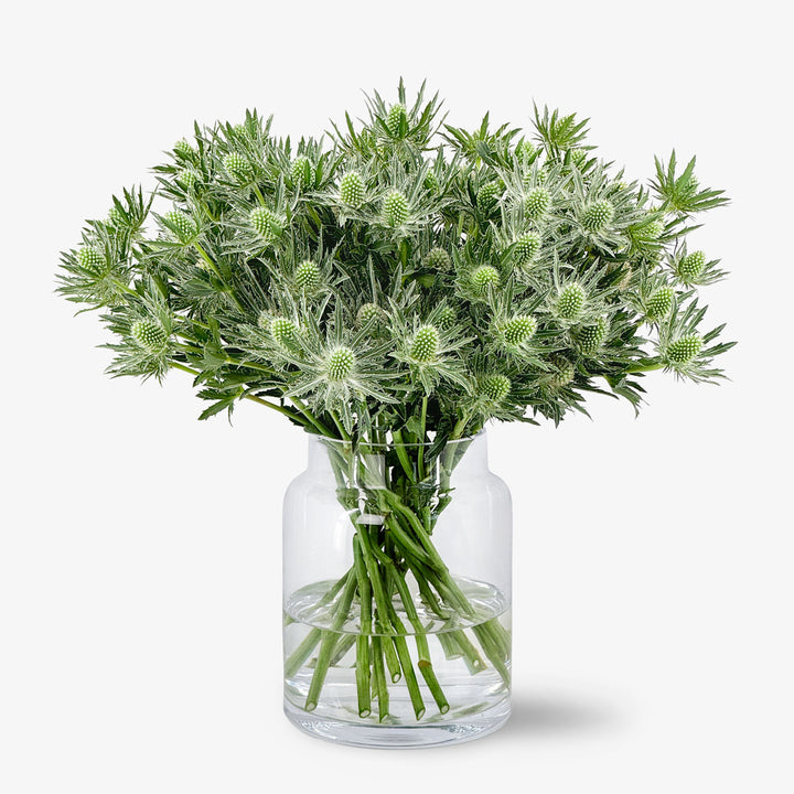 This unique thistle, with its white heart and distinctive bracts, brings extravagant accents to every home.