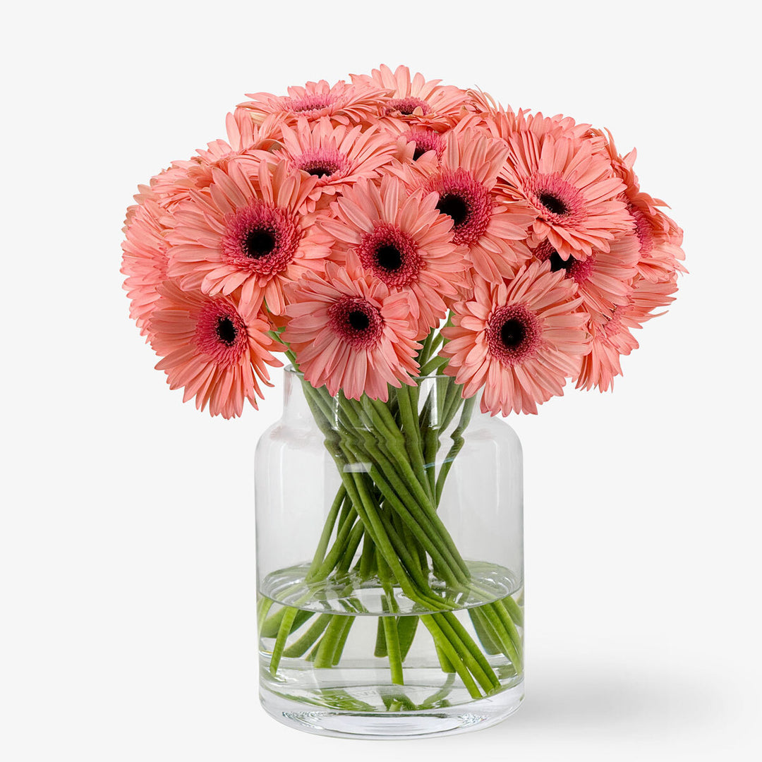 Orange Gerbera sind Muntermacher! Mit ihrer knalligen Farbe vermitteln sie als Geschenk ein Gefühl von Freude, Glück und Freundschaft.