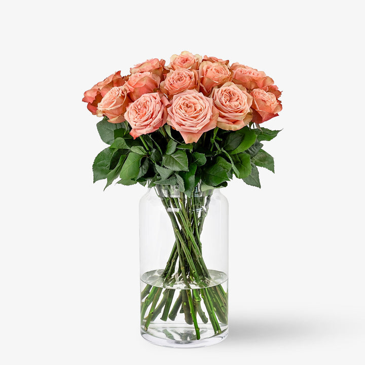 Das Produktbild zeigt 20 Stiele, arrangiert in der 34 cm hohen tf Signature Glasvase Medium.