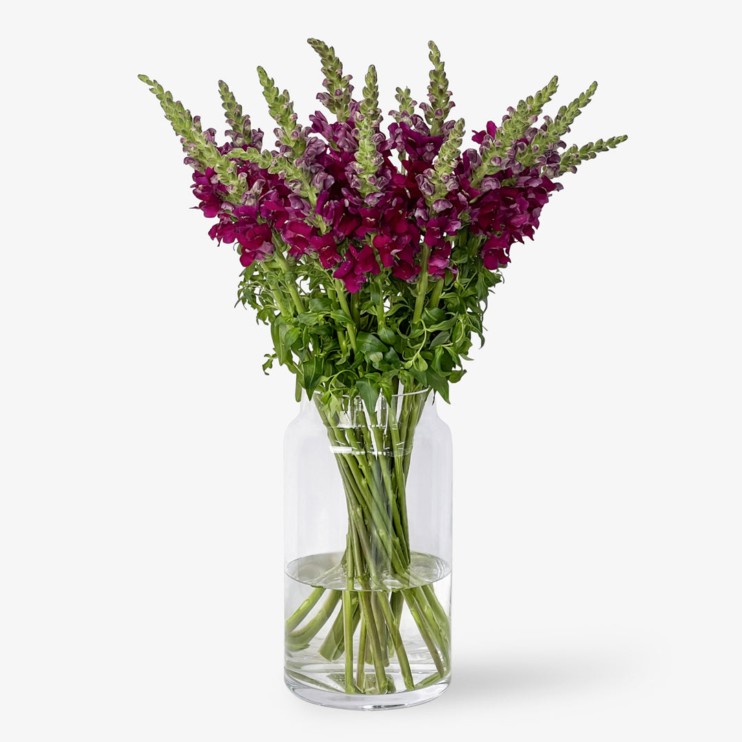 Das Referenzbild zeigt 20 Löwenmäulchen in der 34 cm hohen Tom Flowers Vase Medium.