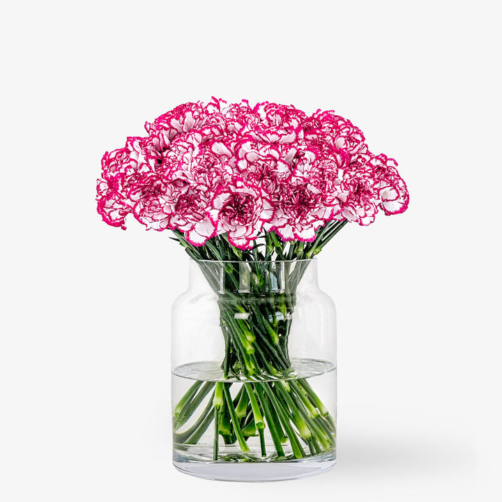 Details zur LieferungEtwa 1-2 cm des Stiels mit einem scharfen Messer schräg abschneiden und untere Blätter entfernen, damit sie nicht in's Wasser ragen. Nelken in eine saubere Vase mit kühlem Wasser stellen. Dem Wasser die Blumennahrung beigeben.