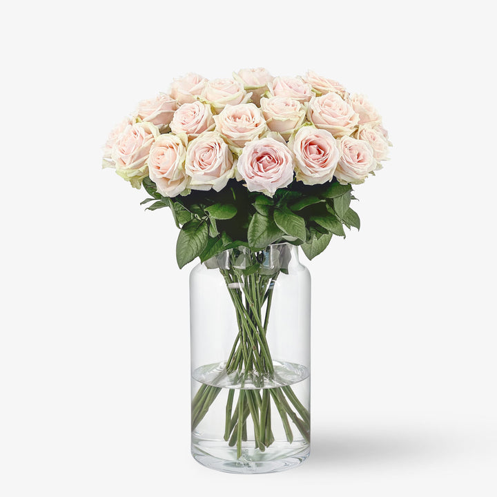 Das Referenzbild zeigt 20 Rosen in der 34cm hohen Tom Flowers Vase Medium.