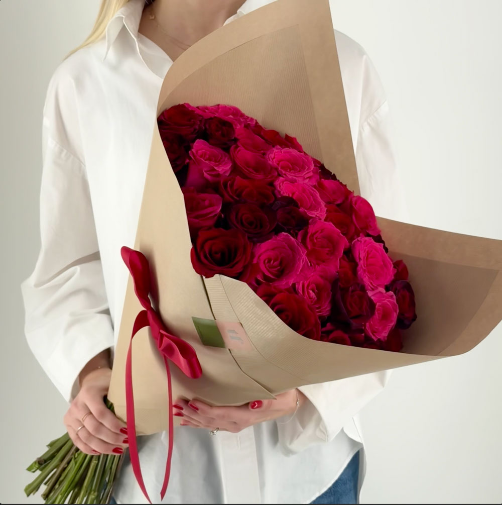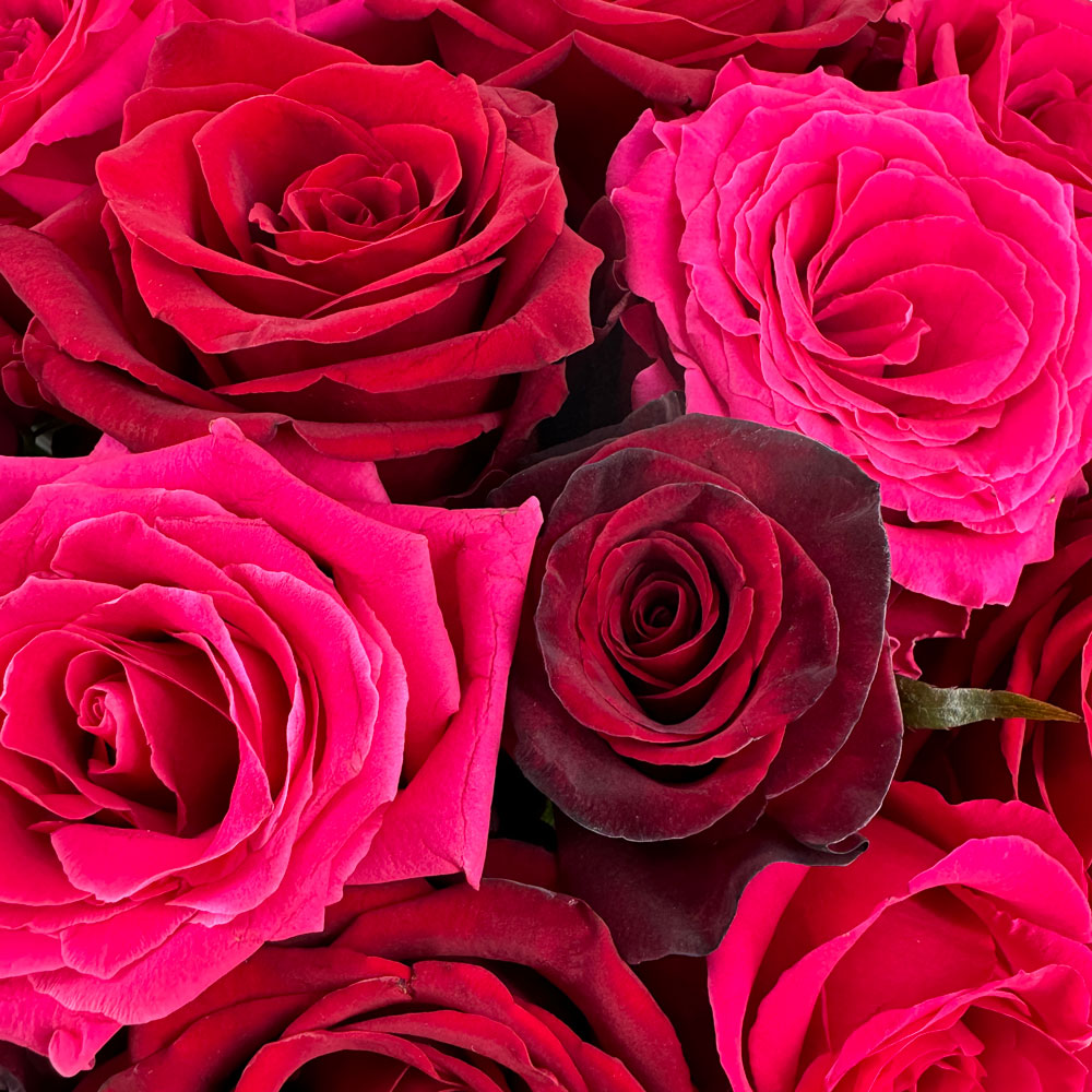 Unsere Lieblingsrosen für Ihre Lieblingsmenschen: Exklusiv zum Valentinstag kombiniert TOM FLOWERS die schönsten Rosenfarben als grosses, eindrückliches Bouquet: Verschiedene Rot- und Pinknuancen.